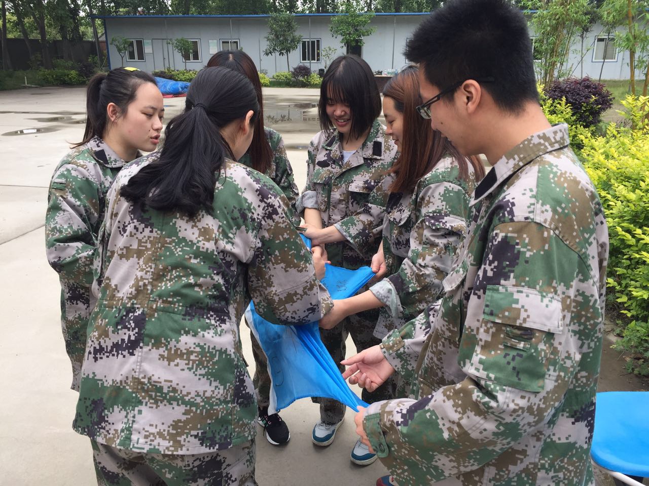 培訓(xùn)開始,大家換上了統(tǒng)一的迷彩服,將隊(duì)伍一字排開。教練向大家講解了戶外拓展訓(xùn)練的具體規(guī)則及注意事項(xiàng),并將隊(duì)員分為2個(gè)小組,每組推選出一名隊(duì)長,要求在10分鐘之內(nèi)準(zhǔn)備隊(duì)名、口號、隊(duì)歌和隊(duì)徽。每隊(duì)充分發(fā)揮集體的智慧和力量,集思廣益,在短短的十分鐘時(shí)間里按要求完成了任務(wù)。