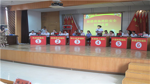 7月15日上午,公司商務樓多功能會議室座無虛席,現(xiàn)場不時響起熱烈的掌聲,加油助威聲此起彼伏,公司組織開展的“安康杯”消防知識競賽活動正緊張進行中……來自公司五大賣場和后勤機關的六支代表隊參加了本次競賽,并邀請了襄城消防大隊少校參謀周昆作為評委參加了活動。公司全體中層以上干部、管理人員共80余人觀看了競賽。
