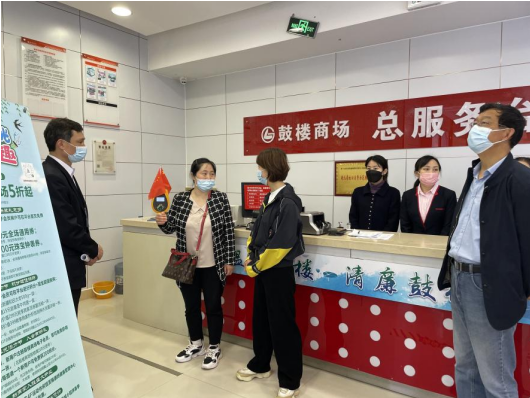 觀摩現(xiàn)場(chǎng),與會(huì)人員參觀了辦公樓、經(jīng)營(yíng)賣場(chǎng)、職工食堂的氛圍宣傳,查閱了鼓樓商場(chǎng)黨風(fēng)廉政建設(shè)、安全生產(chǎn)、法治建設(shè)、疫情防控等工作資料,對(duì)清廉品牌建設(shè)及現(xiàn)階段營(yíng)造的良好清廉氛圍給予了高度肯定。公司黨委委員、紀(jì)委書(shū)記王明軍陪同檢查指導(dǎo)。